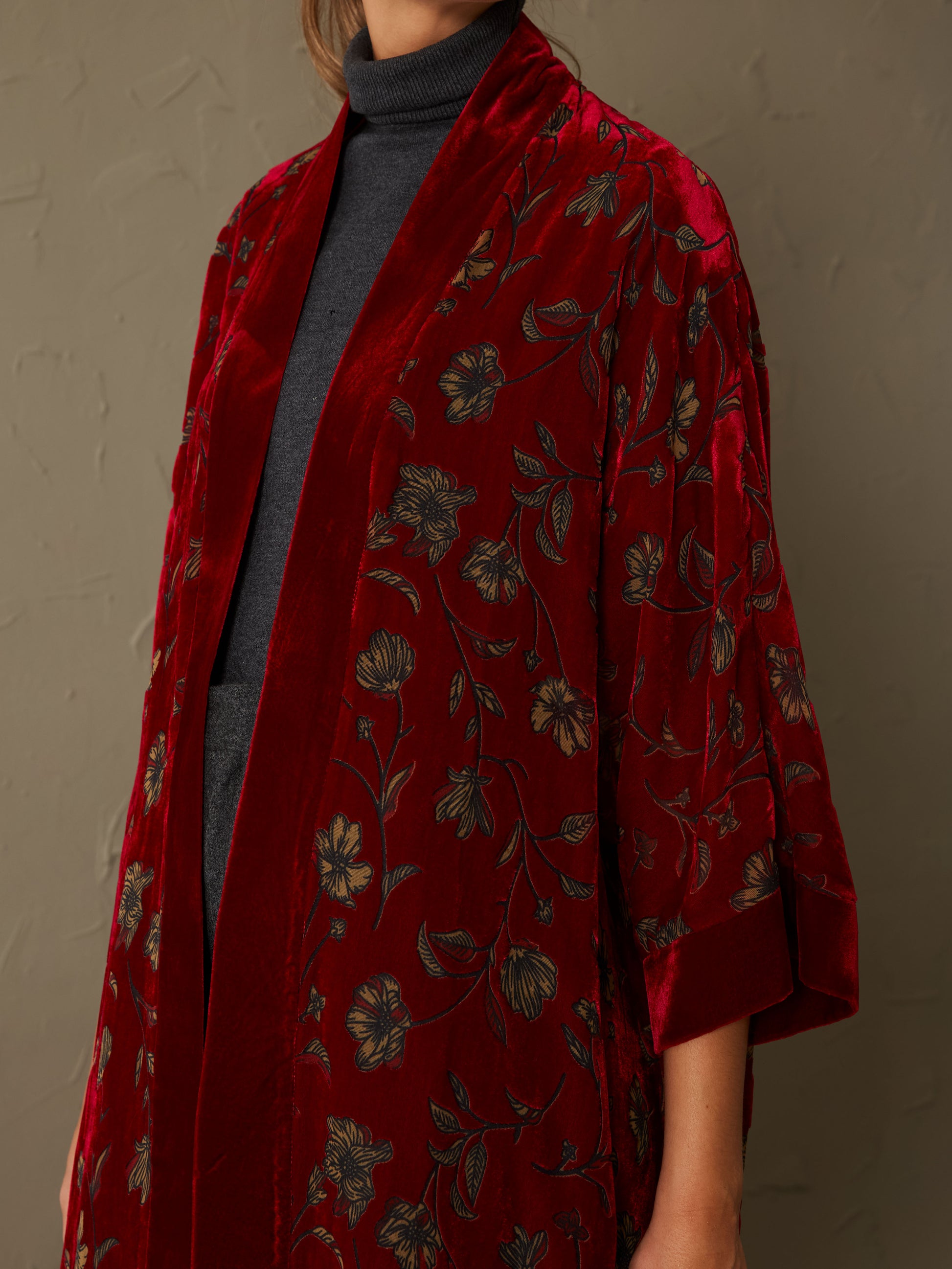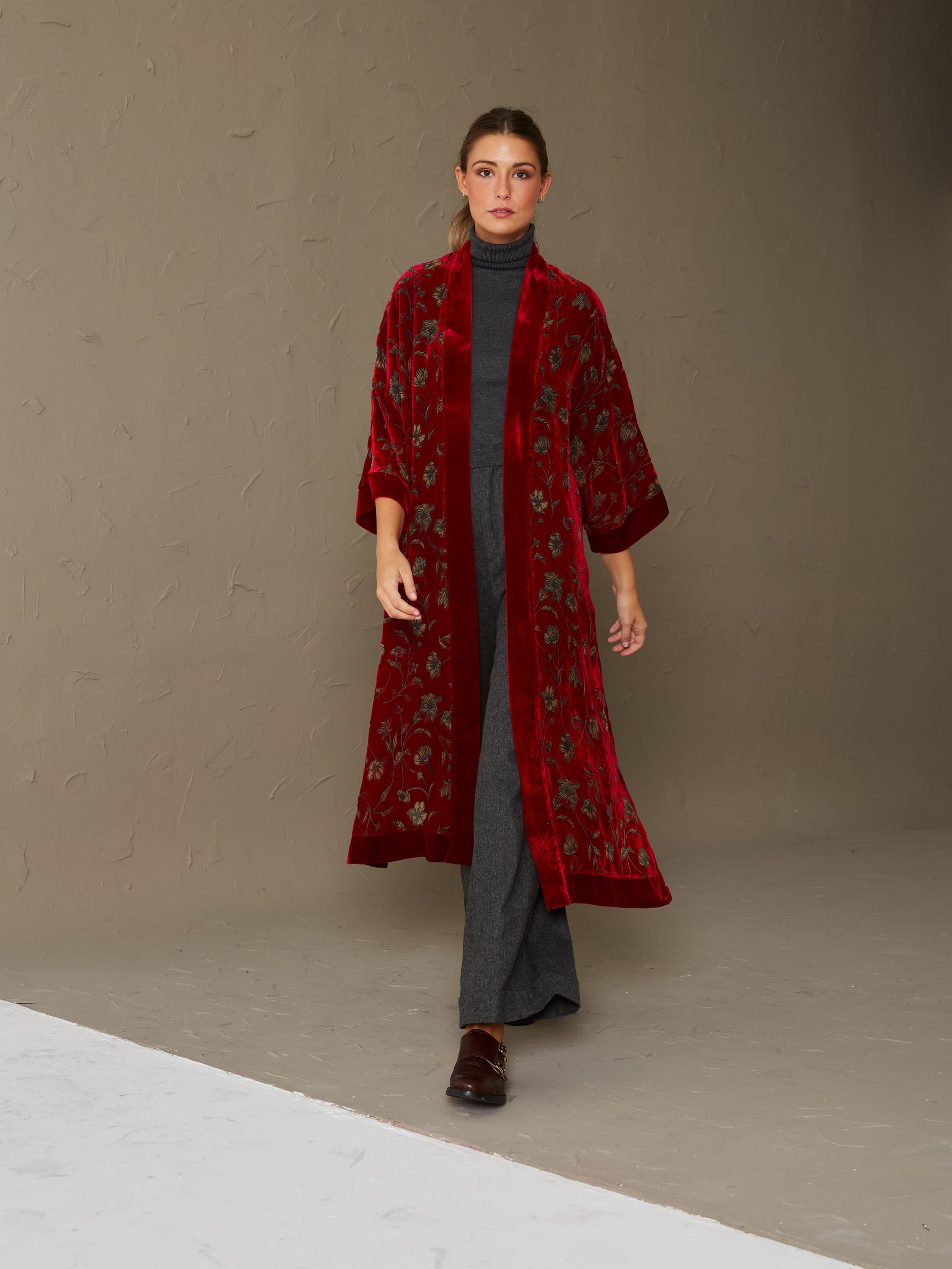 Kimono de terciopelo labrado de seda. Largo 120 cm.