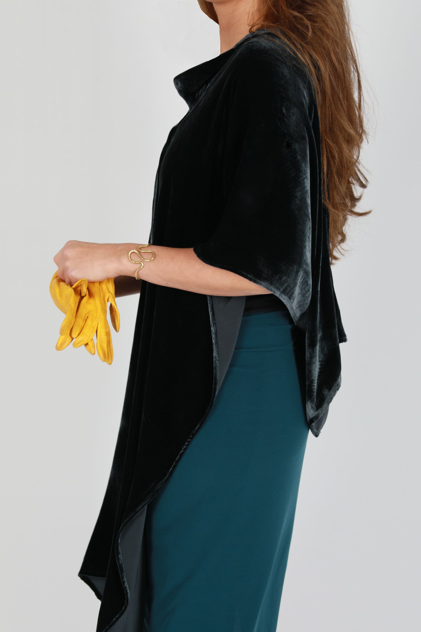 Capita de terciopelo de seda. Versátil: admite distintas posiciones.