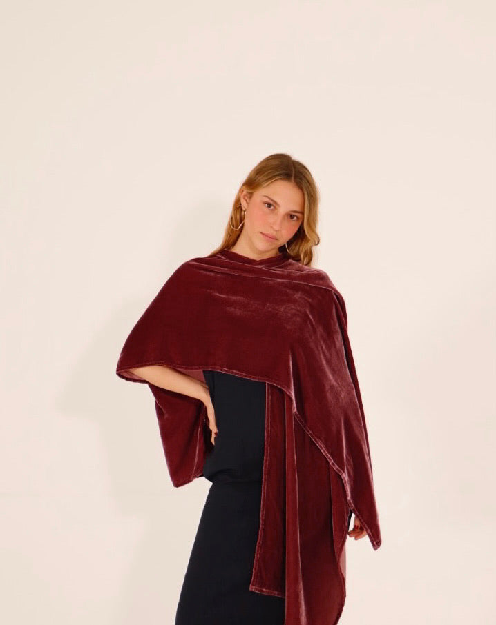 Capita de terciopelo de seda. Versátil: admite distintas posiciones.