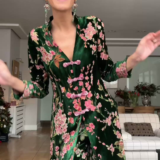 Levita ligera, con aperturas laterales pronunciadas y botonadura oriental.