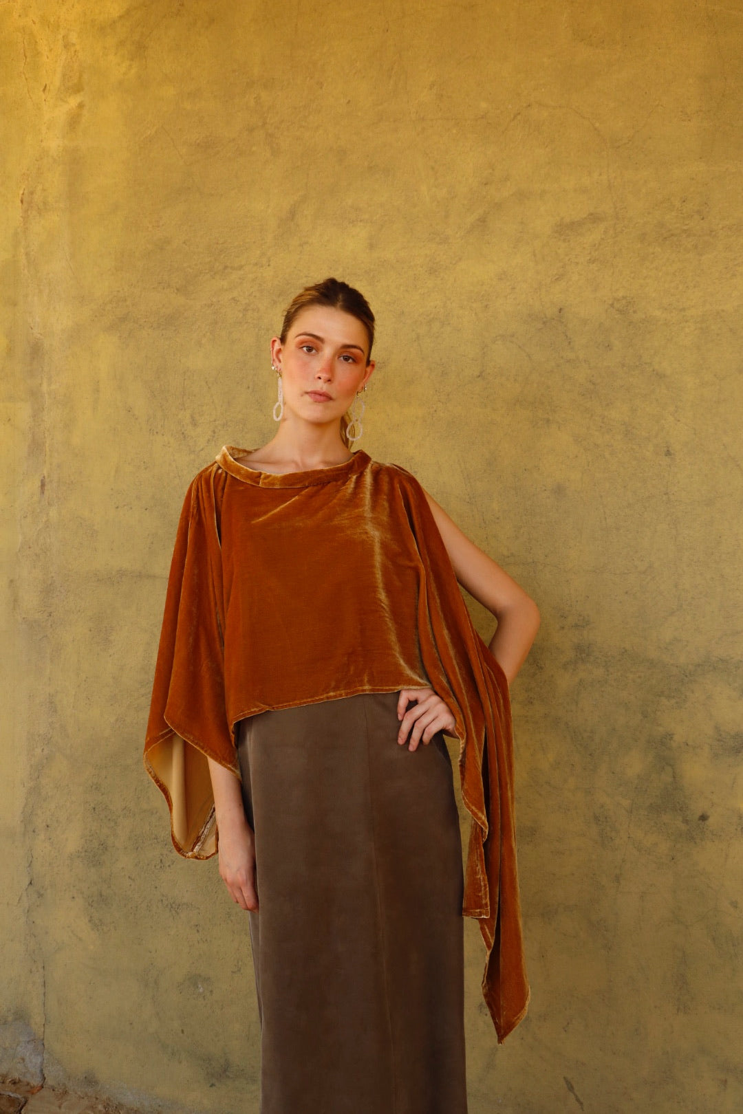 Capita de terciopelo de seda. Versátil: admite distintas posiciones.