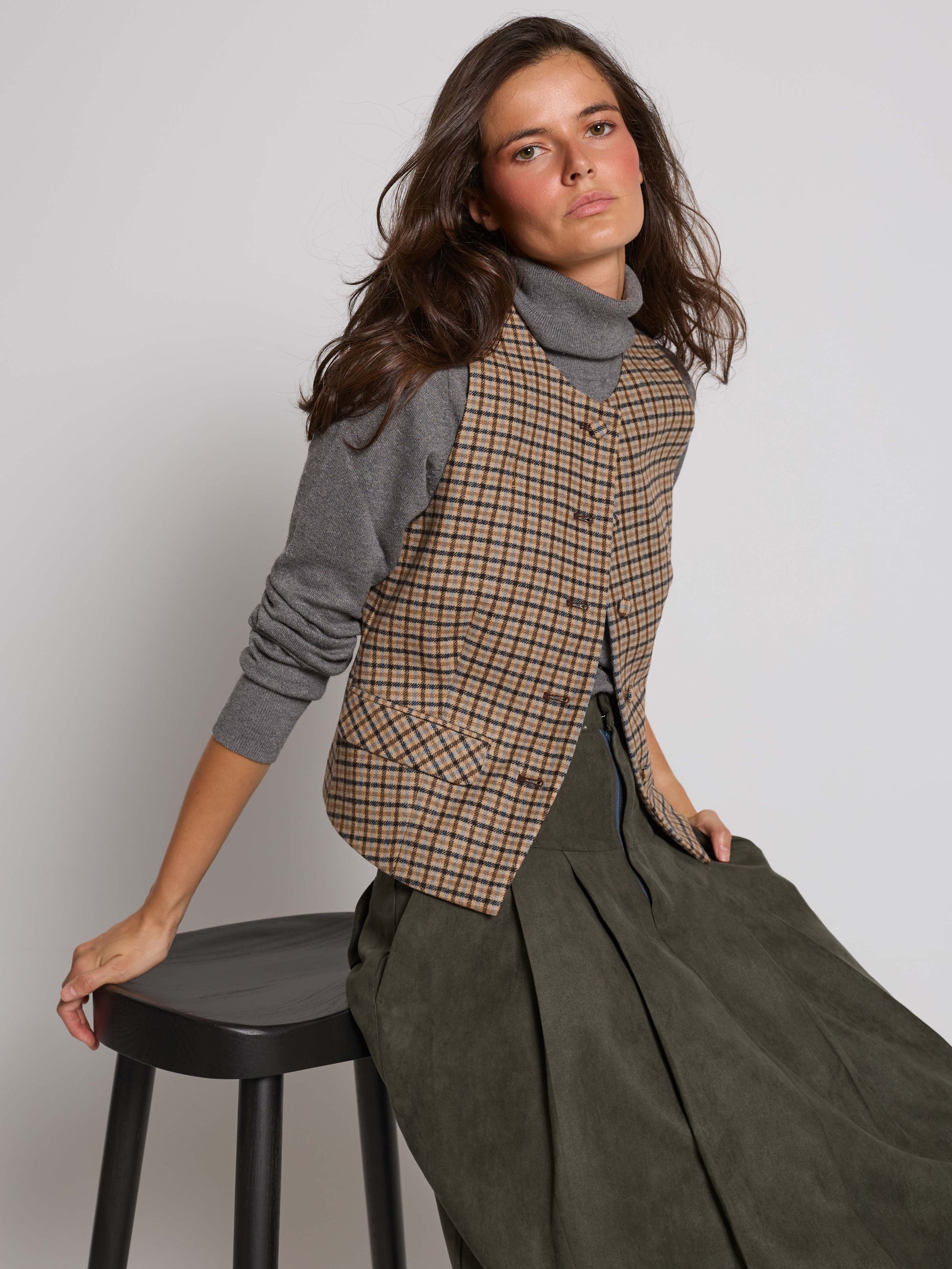 Conjunto de chaleco y pantalón con bolsillos laterales en lana cashmere. Cuadritos ingleses.